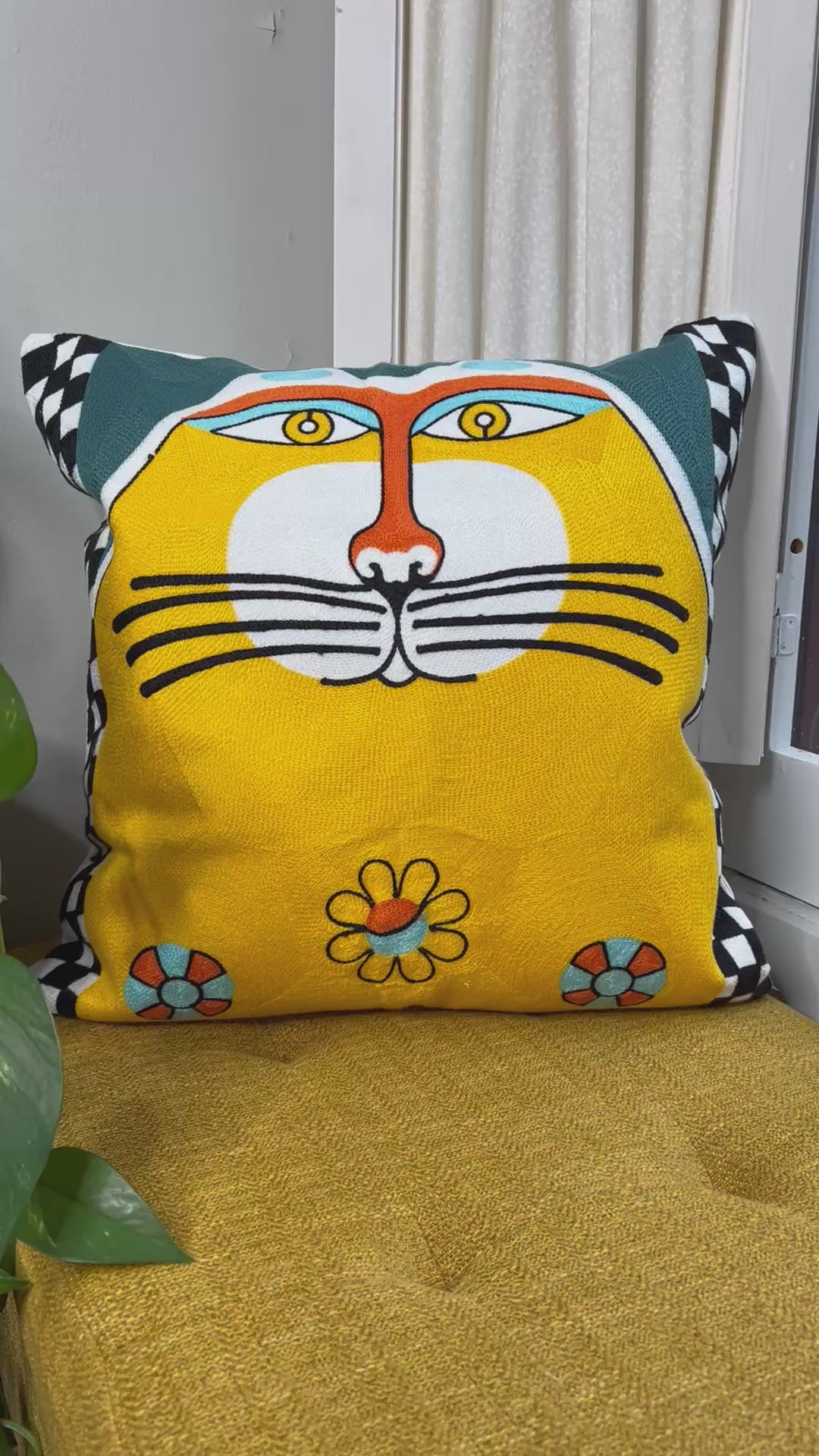 Perfect for cat lovers and eclectic décor, this eye-catching pillow adds a cheerful touch to any room!