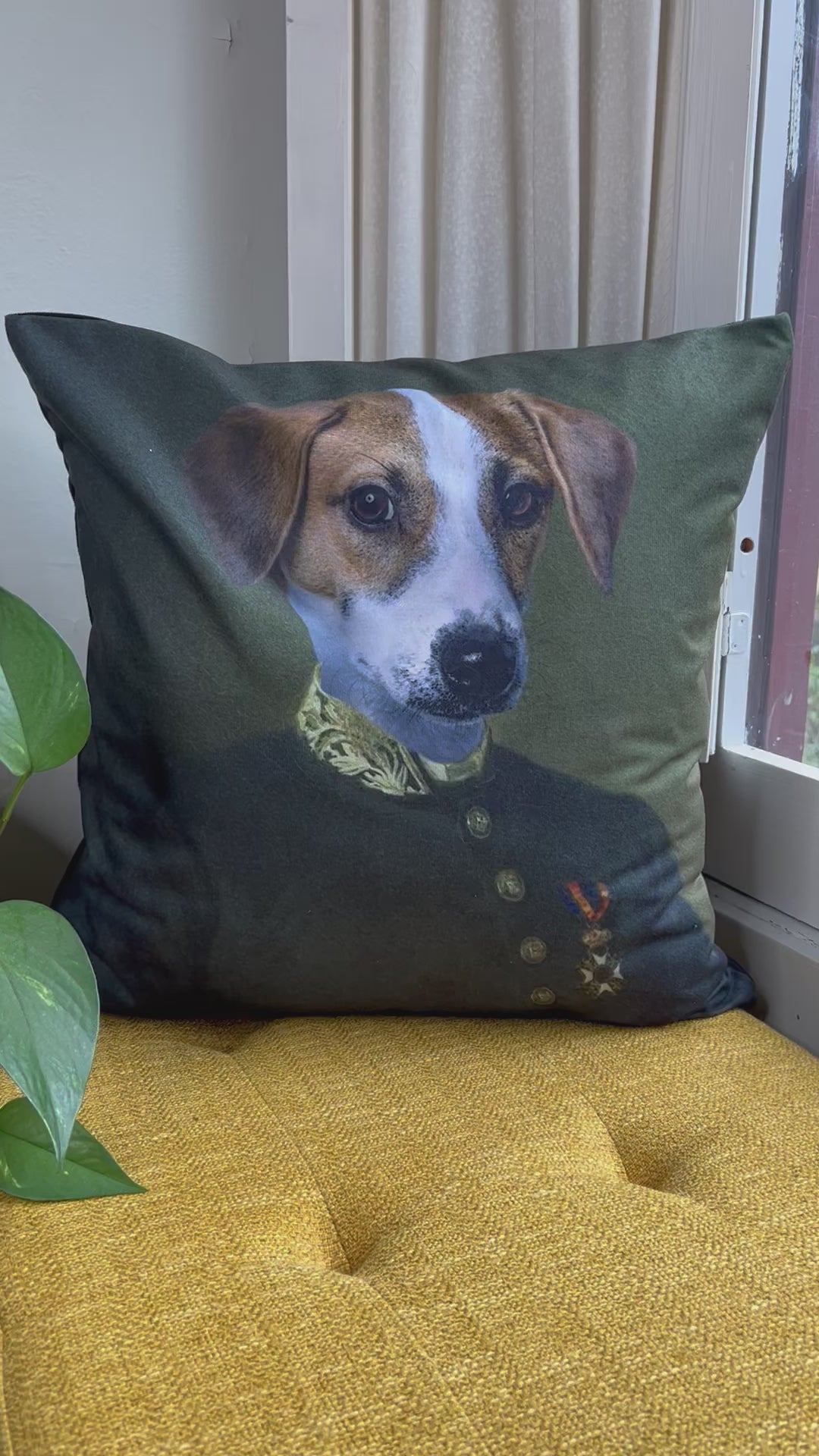 Add a touch of whimsy and elegance to your space with this unique 18x18 Judicious Jack Russel Terrier Cover. Crafted with meticulous attention to detail, this pillow cover features a distinguished Jack Russell Terrier dressed in regal military attire, bringing charm and character to any room. The high-quality fabric with an olive green background enhances its luxurious feel and durability, while the sophisticated design makes it a perfect fit for modern, eclectic, or vintage-inspired decor.