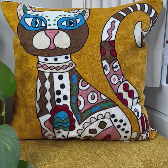 Gold Abstract Cat | Embroidered Pillow Cover | Cat Lovers Collection