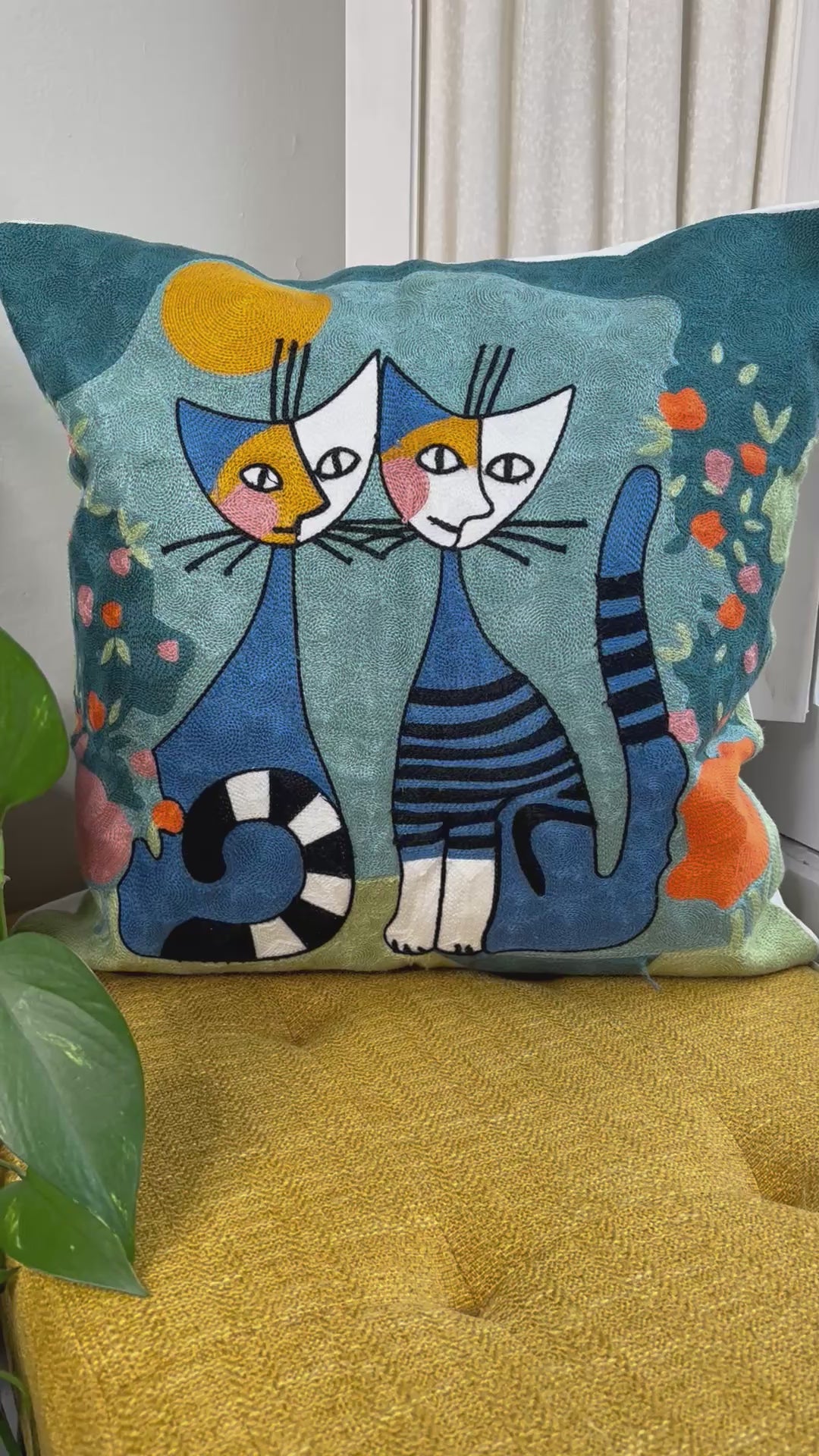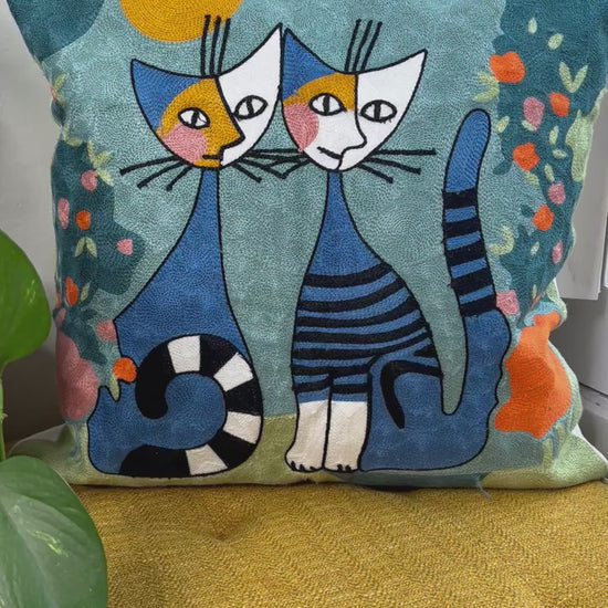 Twin Siamese Cats | Embroidered Pillow Cover
