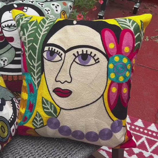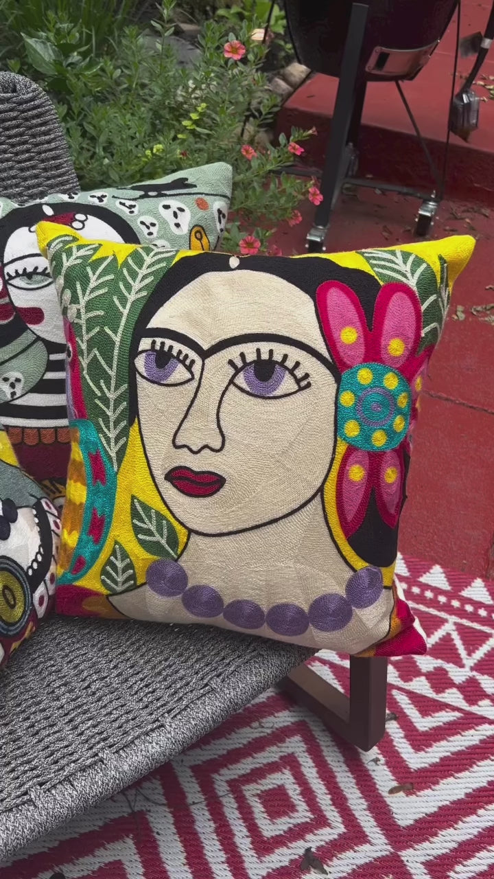 Set of three of our best selling Frida Kahlo embroidered pillow covers. Bring color and vibrancy into your home or office!