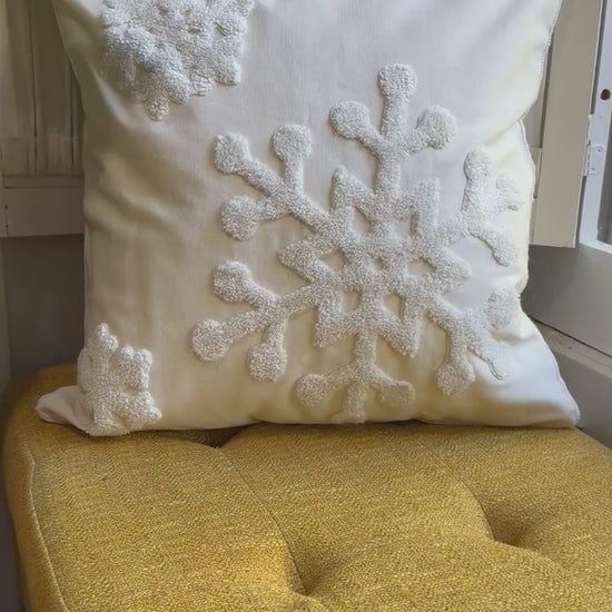Transform your living space with our warm white monochromatic Snowflake Embroidered Pillow Cover, perfect for adding a touch of seasonal charm to your home decor. This high-quality pillow cover features a beautifully detailed deer design, meticulously embroidered on soft, durable fabric. Ideal for holiday decorating or creating a cozy wintet ambiance, this pillow cover easily fits any standard throw pillow. Enhance your home with this elegant, nature-inspired accent piece, perfect for sofas, beds, or chairs.