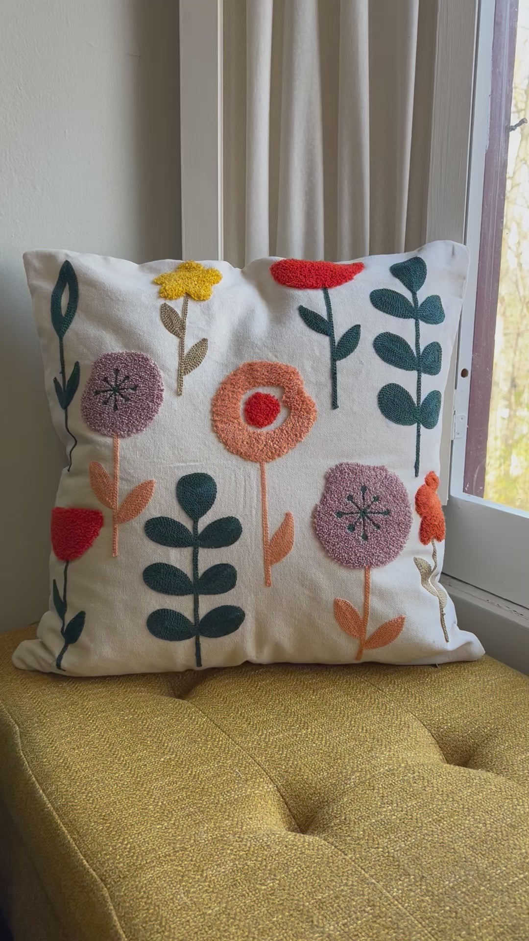 Vibrant Floral Embroidered Throw Pillow Cover