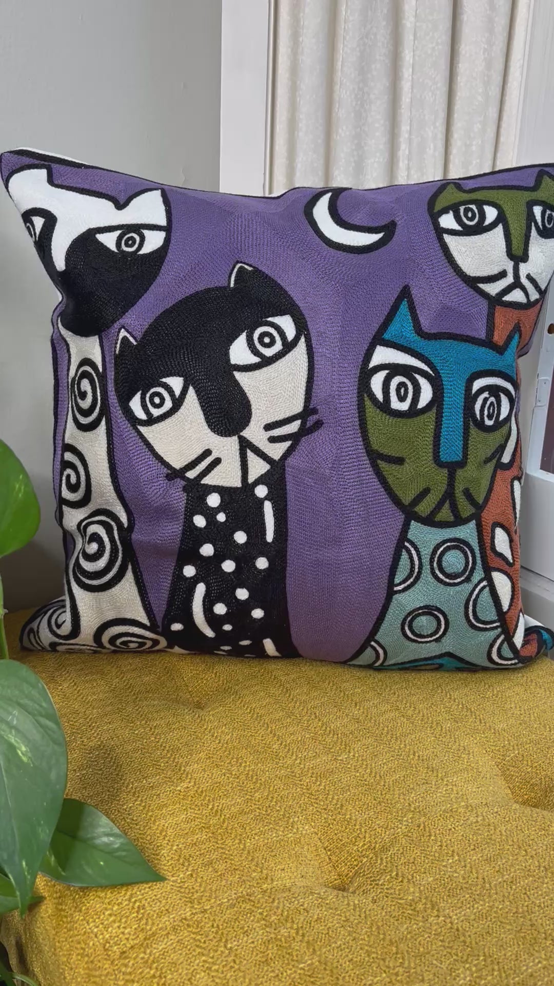 Quarter Moon Bazaar Moonlight Meetup | Embroidered Pillow Cover | Cat Lovers Collection Review